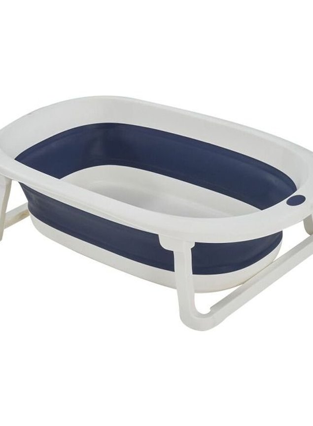 A banheira possui pé dobrável antiderrapante e suporta até 20 litros de água.