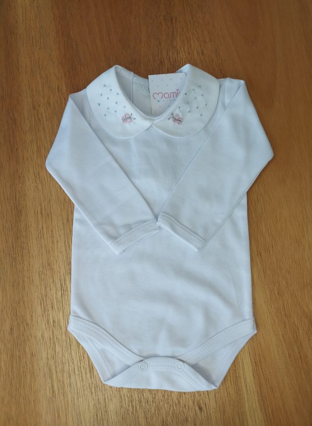 Body Manga Longa confeccionado em malha 100% algodão, ideal para compor com nossas saídas de maternidade. Com bordado delicado de borboleta na gola. Um verdadeiro encanto!