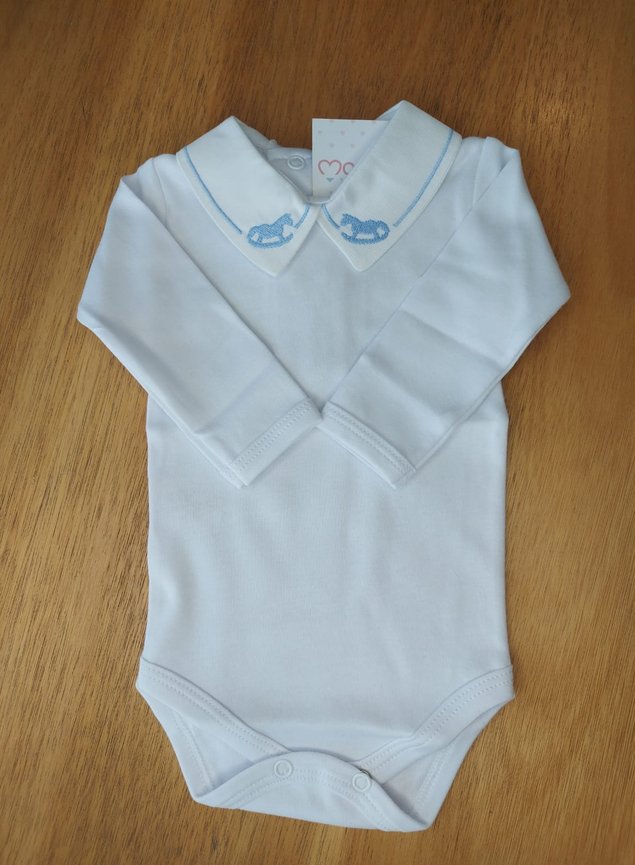 BODY MANGA LONGA GOLA BORDADA CAVALINHO AZUL