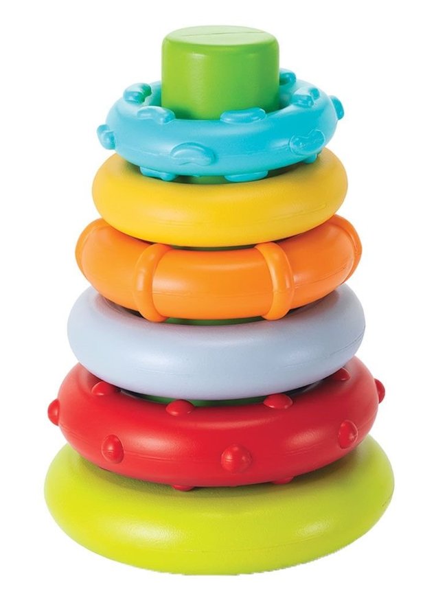 Os seis anéis coloridos são divertidos para bebês mais novos agarrarem, segurarem, agitarem e explorarem.
