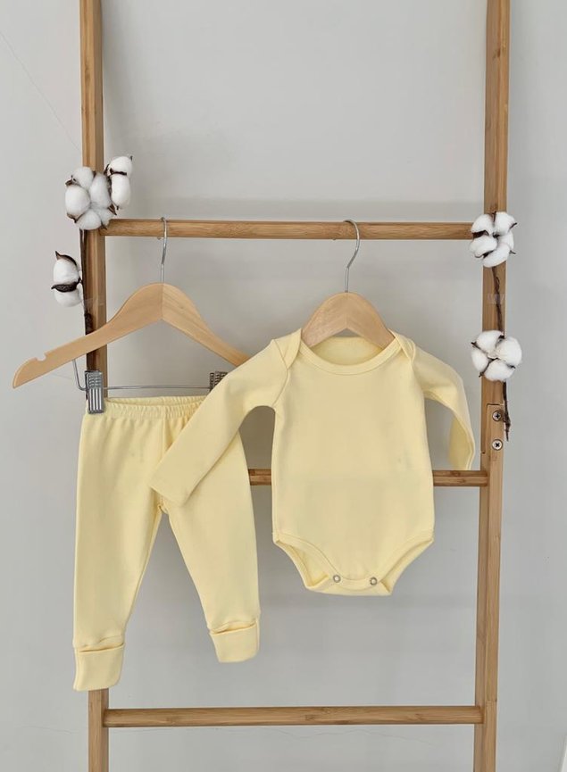 Conjunto body e calça confeccionados em suedine 100% algodão, composto por body manga longa e calça.