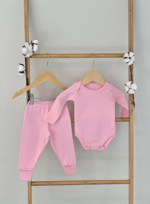 Conjunto body e calça confeccionados em suedine 100% algodão, composto por body manga longa e calça.