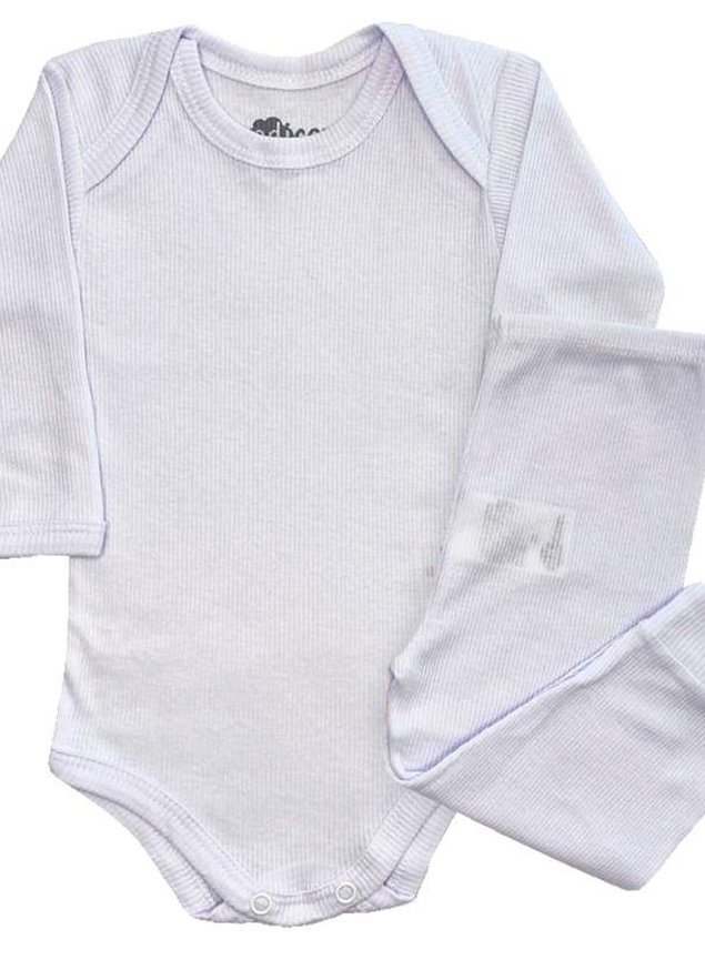 Lindo conjunto de calça e body manga longa em ribana canelada 100% algodão, body com gola envelope e abertura com botões entre pernas facilitando a troca do bebê. A calça é sem pezinho e cós com elástico.