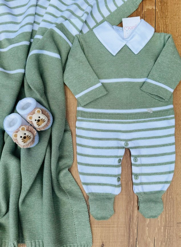 A ansiedade só aumenta imaginado seu pequeno vestido com ele né mamãe?! Nosso Conjunto Maternidade Enzo é feito de material antialérgico, com maciez ao toque, garantindo todo conforto ao bebê. Com padrão de listras clássico e elegante. Seu pequeno vai encantar a todos com ele! Também acompanha 1 manta com o mesmo detalhe listrado do macacão. Irresistível!