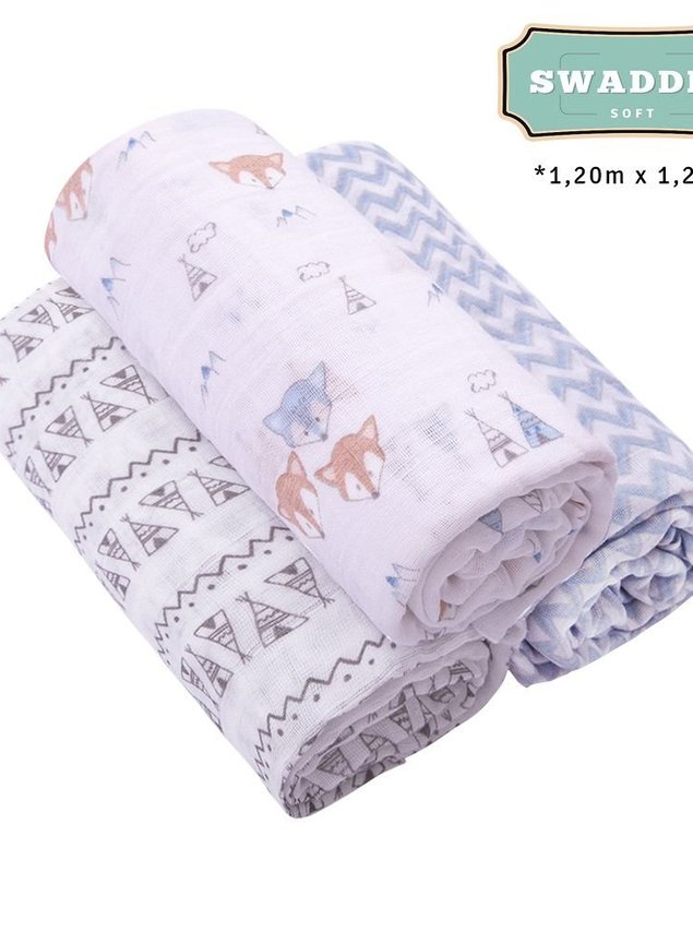 Cueiro Swaddle Soft Premium Papi Baby 1,20x1,20m Masculino 3 peças
