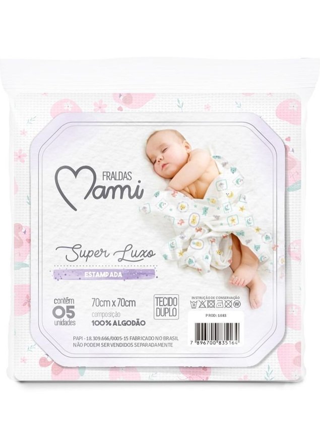 Fralda Mami Super Luxo Estampada com Bainha, maciez e conforto para o bebê!