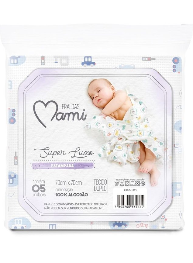 Fralda Mami Super Luxo Estampada com Bainha, maciez e conforto para o bebê!