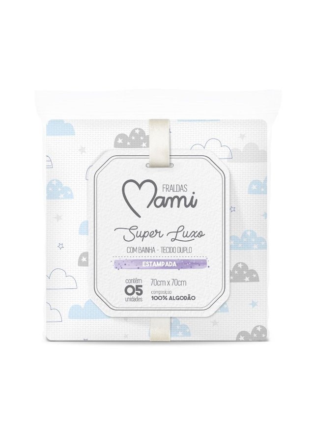 Fralda Mami Super Luxo Estampada com Bainha, maciez e conforto para o bebê!