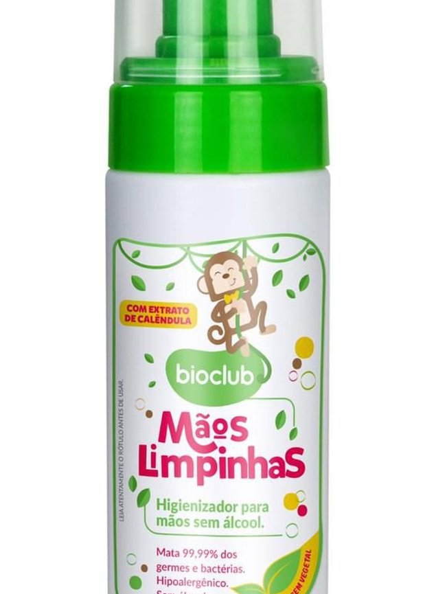 Higienizador Mãos Limpinhas Bioclub, é uma solução de limpeza com origem vegetal e sem álcool.