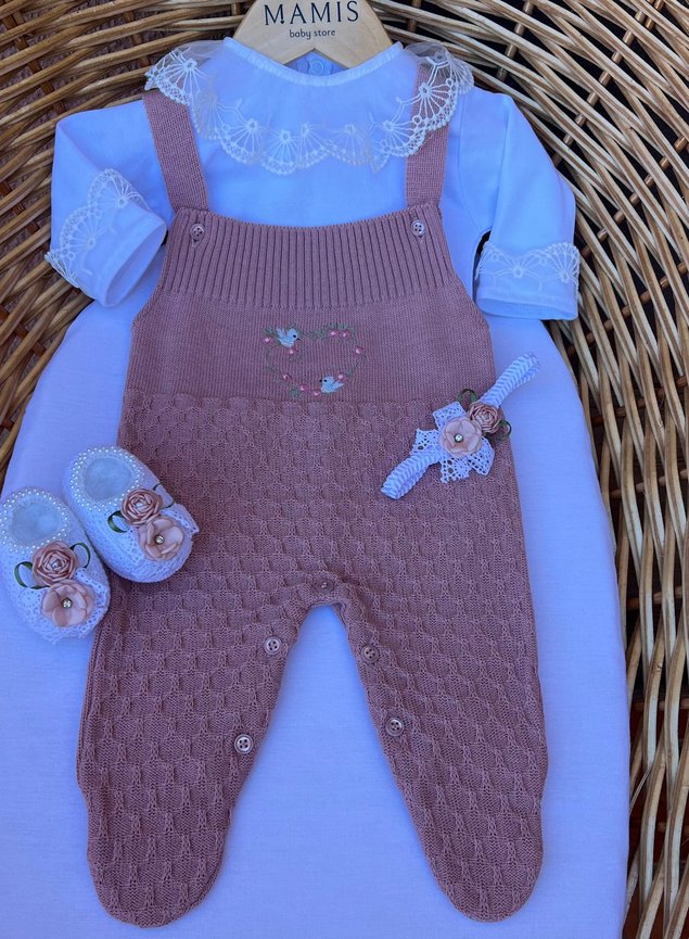 Conjunto composto por Jardineira com bordado e Body com detalhe em renda que dão o maior charme no look da sua princesa, além de ser súper confortável. Confeccionado em tricot em linha ideal para ser usado na maternidade. Produto antialérgico, com maciez ao toque, garantindo conforto ao bebê.