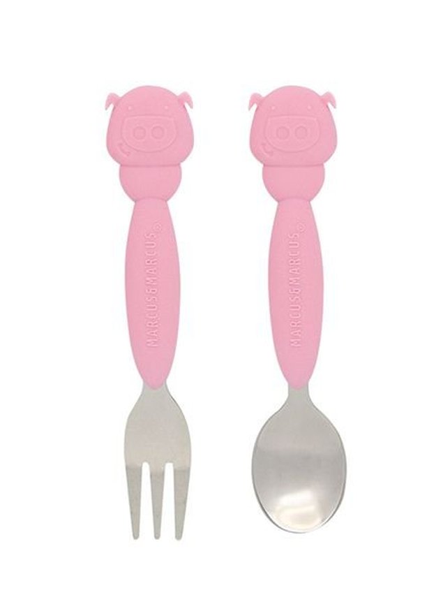 O Conjunto de Colher e Garfo da Marcus & Marcus é perfeito para introdução dos pequenos aos talheres de adultos! São Seguros e desenvolvidos espeficiamente para as pequenas mãozinhas.