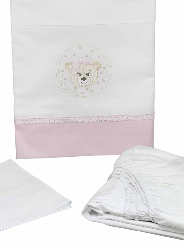 Jogo de Lençol Berço Percal 200 Fios Ursinha (3 Peças)