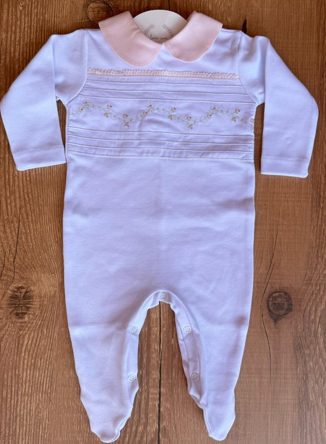 Frente com bordado delicado e manga longa, para manter os bracinhos aquecidos.