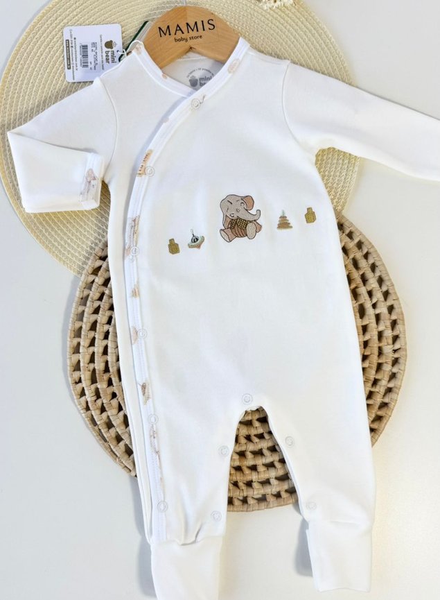 Macacão todo estiloso com bordado, em algodão egípcio pettenati sustentável, um dos dois melhores algodões do mundo, com toque extremamente suave e macio, perfeito para abraçar a pele do seu bebê nos primeiros meses de vida, com proteção uv+50.