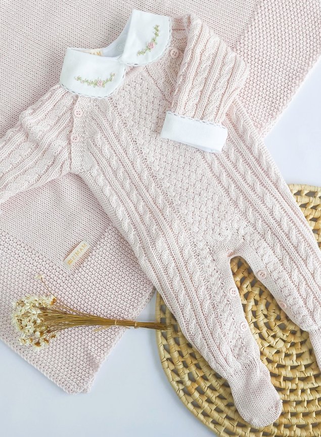 Macacão em tricot confeccionado com linha premium de material 100% antialérgico, térmico e muito confortável, com detalhe de trama trançada.