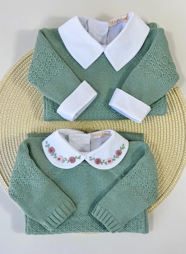 Modelo confeccionado com manga longa, para manter os bracinhos aquecidos e fechamento por botões nas costas e no entrepernas para facilitar na hora de vestir e também durante a troca de fraldas.
