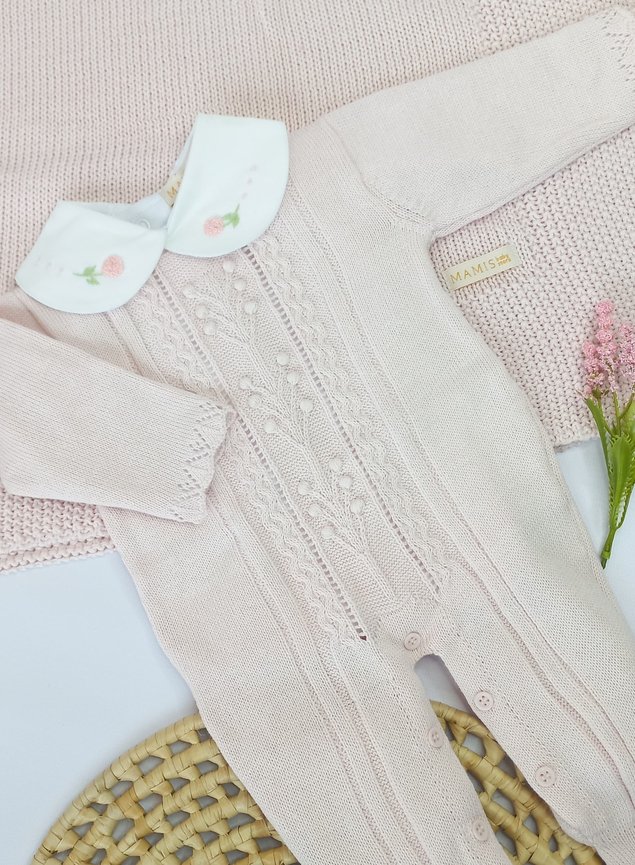 Macacão muito delicado em Tricot confeccionado com linha mista premium, antialérgico e térmico, uma peça macia ao toque e confortável para sua bebê.