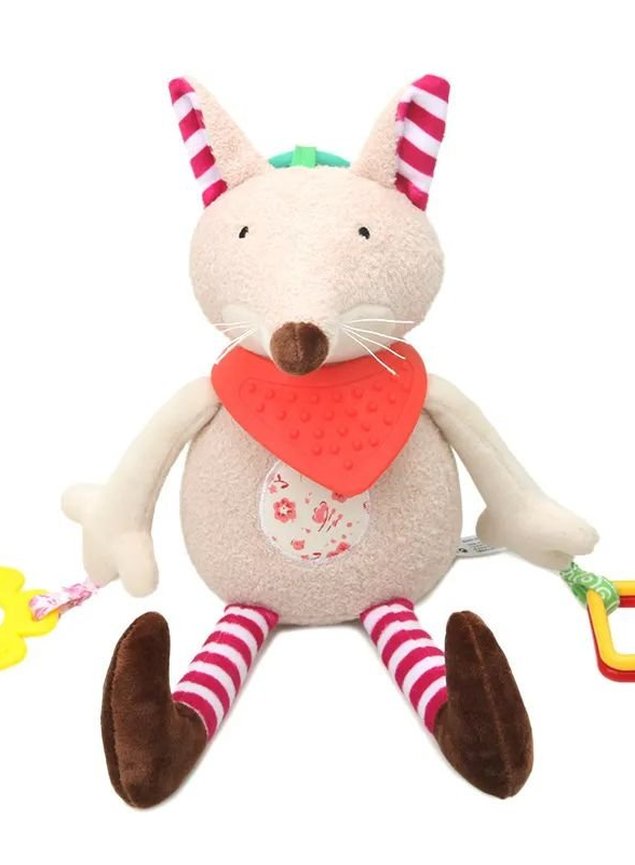 Com sons suaves no chocalho e detalhes em cores vibrantes despertando a curiosidade dos pequenos.