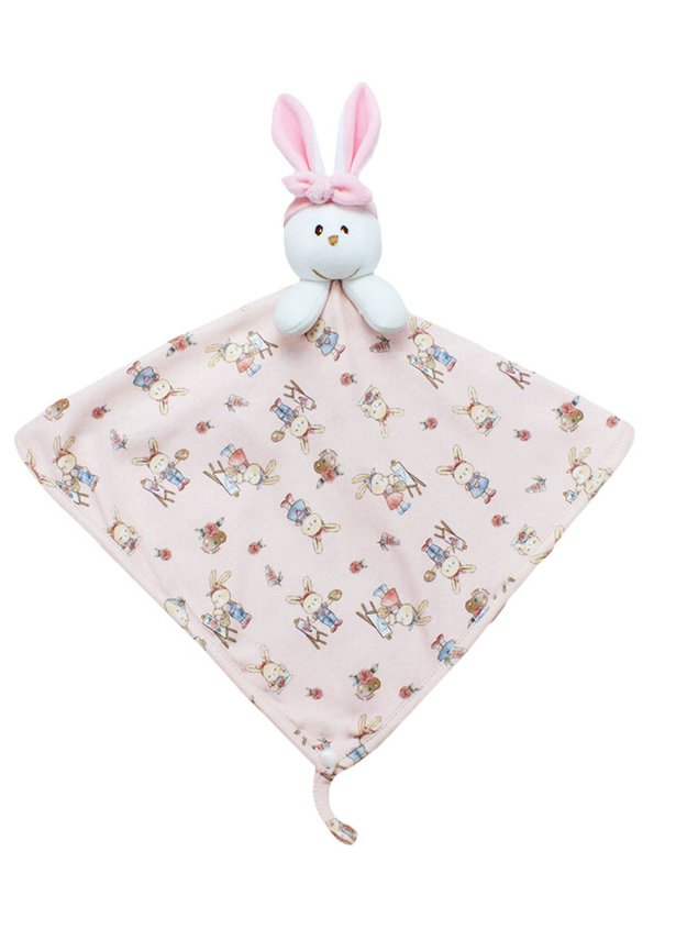 Naninha macia, charmosa e delicada com fraldinha em suedine 100% algodão egípcio, para o bebê agarrar e se divertir. Detalhe Ursinho na ponta com prendedor de chupeta.