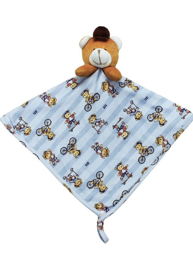 Naninha macia, charmosa e delicada com fraldinha em suedine 100% algodão egípcio, para o bebê agarrar e se divertir. Detalhe Ursinho na ponta com prendedor de chupeta.