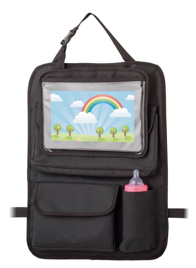 Pensando na praticidade e organização do carro, a Multikids desenvolveu o organizador para carro com case para tablet Store 'n Watch, que mantém os acessórios do seu filho sempre organizados, protege os bancos de eventuais sujeiras e acomoda um tablet de até 9,7" para deixar o passeio ainda mais divertido.