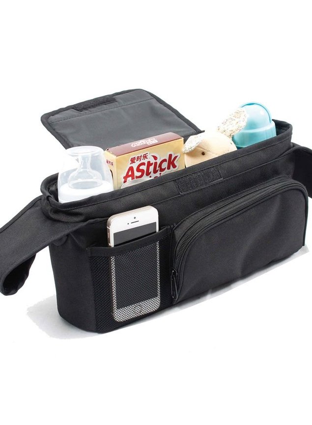 Compatível com a maioria dos carrinhos de bebê, possibilita a organização de pequenos itens, como fraldas, mamadeiras, celular dos papais, e documentos.