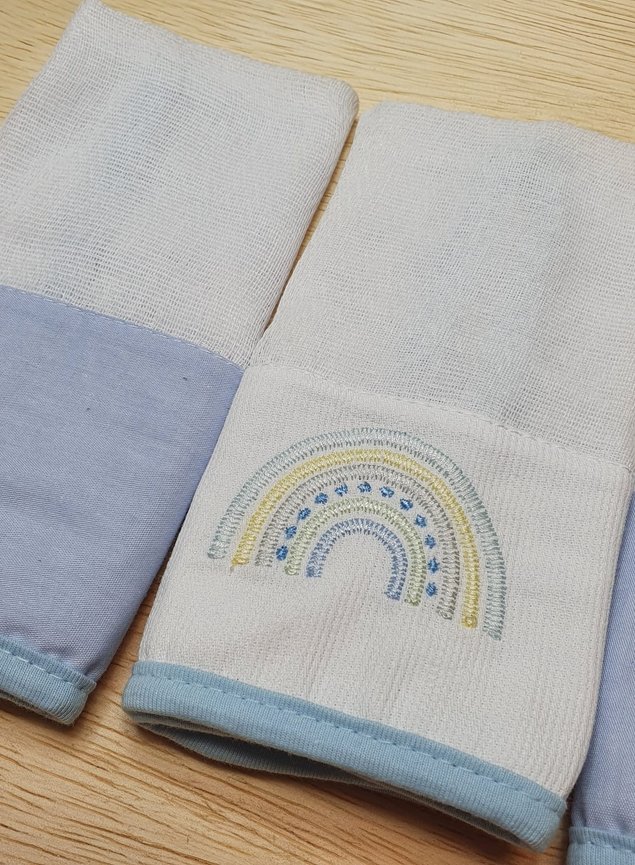 Nossos kits fraldinhas de 3 unidades são de tecido fralda 100% algodão. Uma delas com bordado e 2 lisas.