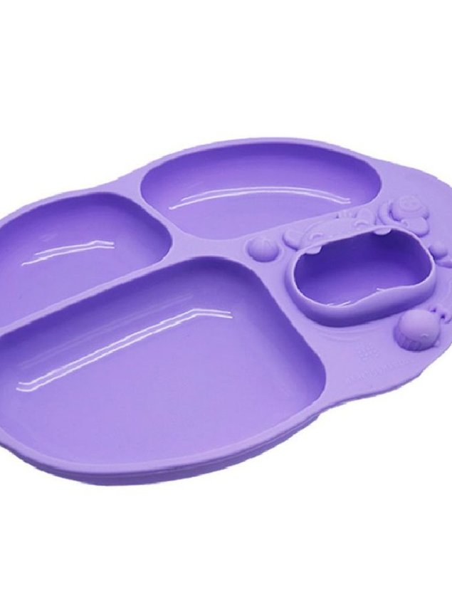 São lindos bichinhos com divisão de 4 compartimentos para que os alimentos fiquem separadinhos e com sistema de sucção, evitando que o prato fuja entre uma colherada e outra :)