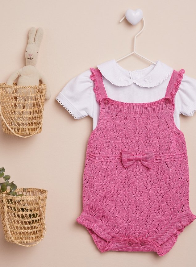 Conjunto composto por Romper e Body com detalhe que dão o maior charme no look da sua princesa, além de ser super confortável. Confeccionado em tricot em linha ideal para ser usado em dias mais quentes. Produto antialérgico, com maciez ao toque, garantindo conforto ao bebê.