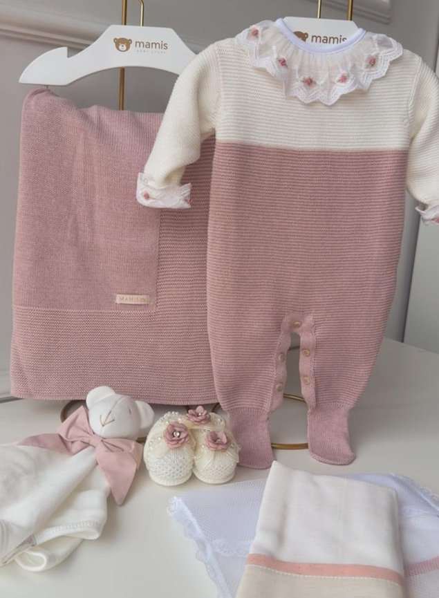 Composta por 2 peças, sendo uma manta e um macacão em tricot premium 100% antialérgico.
