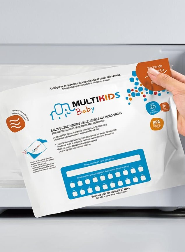 Os sacos esterilizadores reutilizáveis para Micro-ondas da Multikids Baby são a solução perfeita para garantir a máxima higiene das mamadeiras, bicos, chupetas e acessórios de bomba extratoras de leite, em qualquer lugar que estejam!