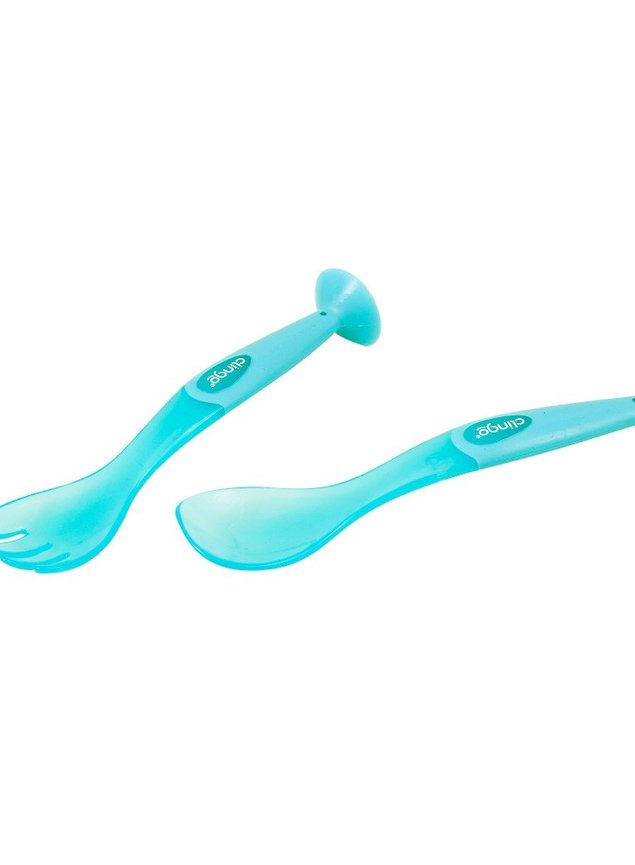 O conjunto de Talheres com ventosa da Clingo incentiva a criança a comer sozinha com facilidade e segurança.