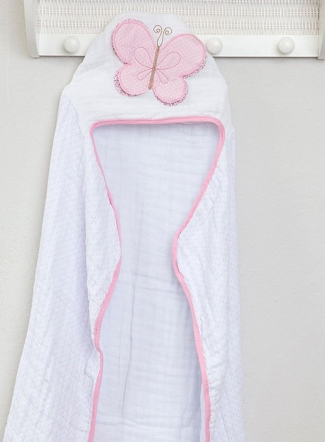 Confeccionadas em tecido de fralda Soft 100% algodão, a toalha possui 3 camadas de tecido duplo, com um lindo acabamento em viés de malha e Capuz para proteção!