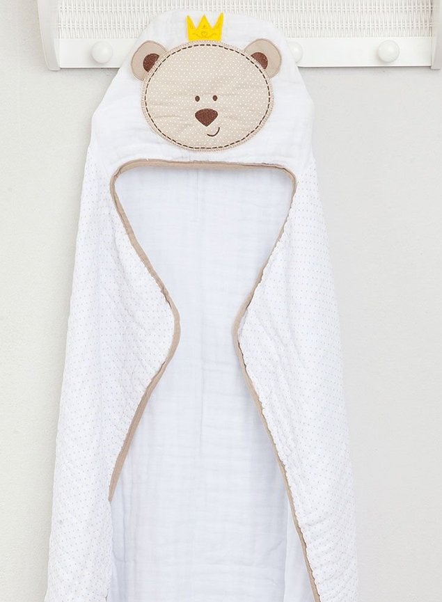 Confeccionadas em tecido de fralda Soft 100% algodão, a toalha possui 3 camadas de tecido duplo, com um lindo acabamento em viés de malha e Capuz para proteção!